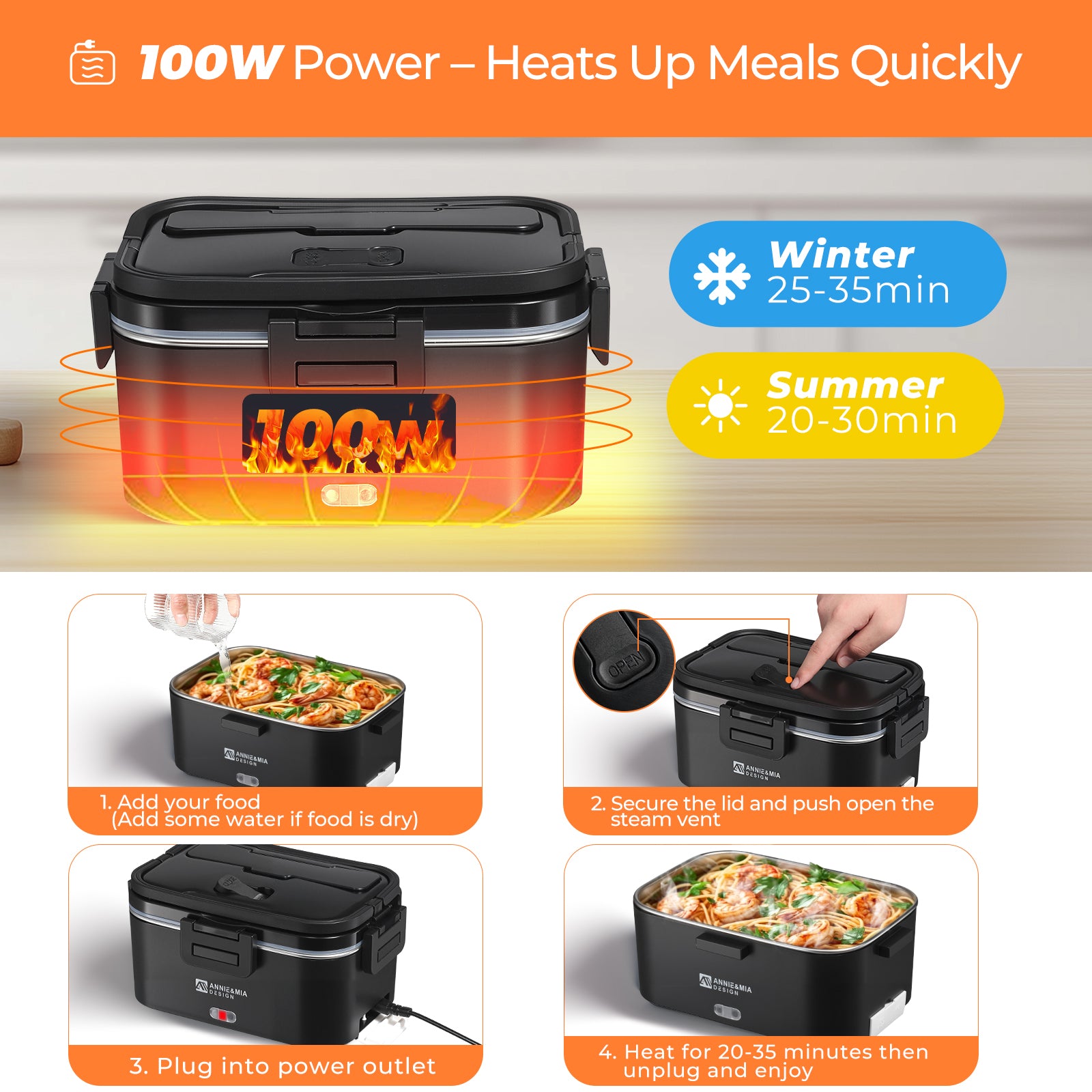 - Fast And Safe Heating: This electric lunch box uses 100w PTC heaters to self-regulate temperature. The PTC technology ensures fast heating while preventing overheating. A hot meal will be ready in 20-30 minutes while you are busy with other work. Fast, convenient, energy-efficient and safe.