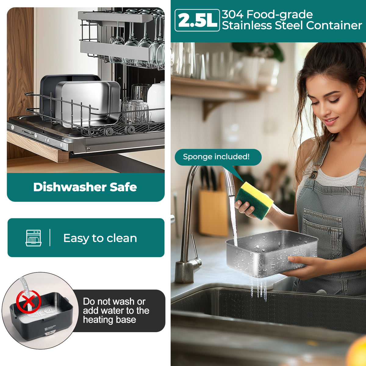 304 stainless container(s) — removable & dishwasher-safe; base is wipe-clean