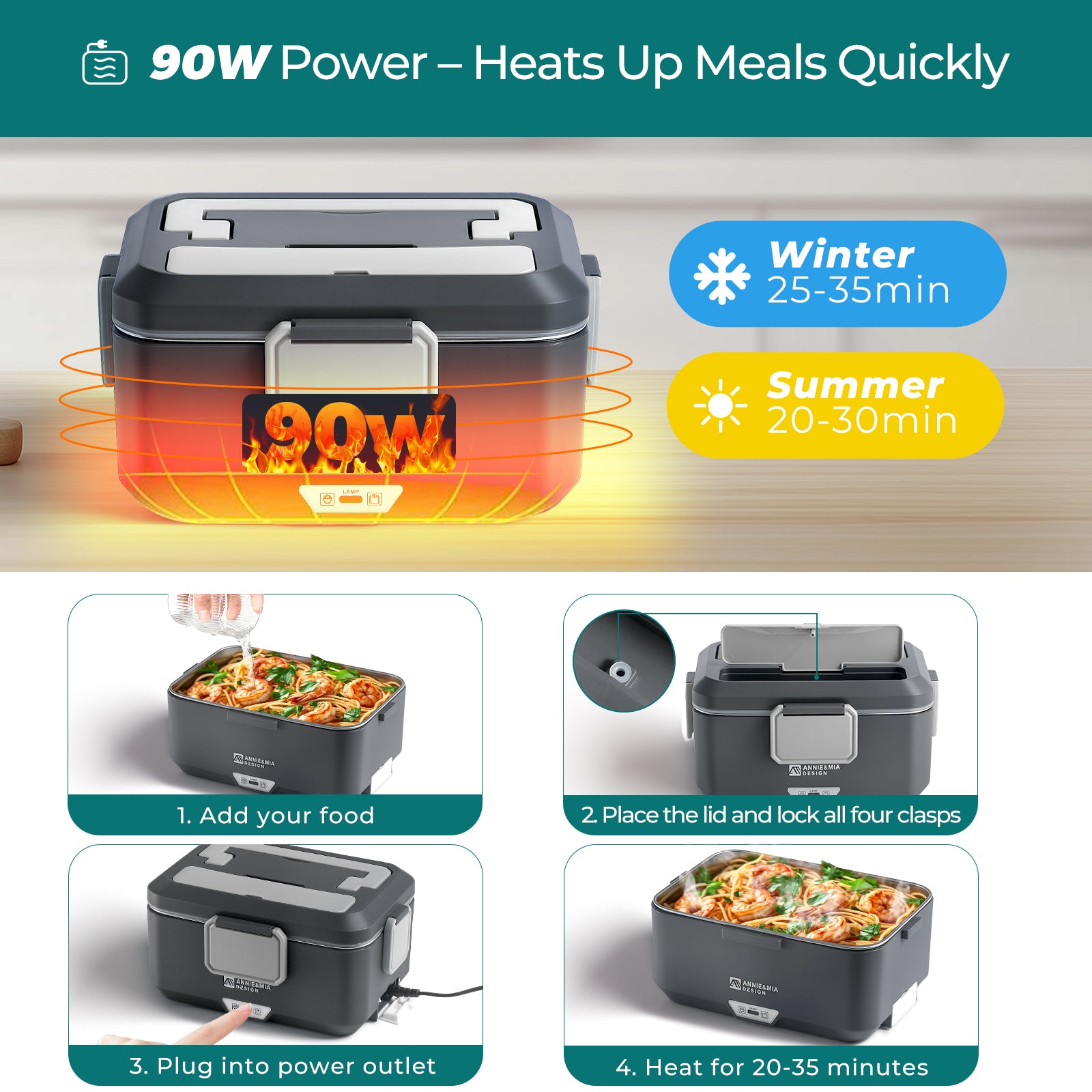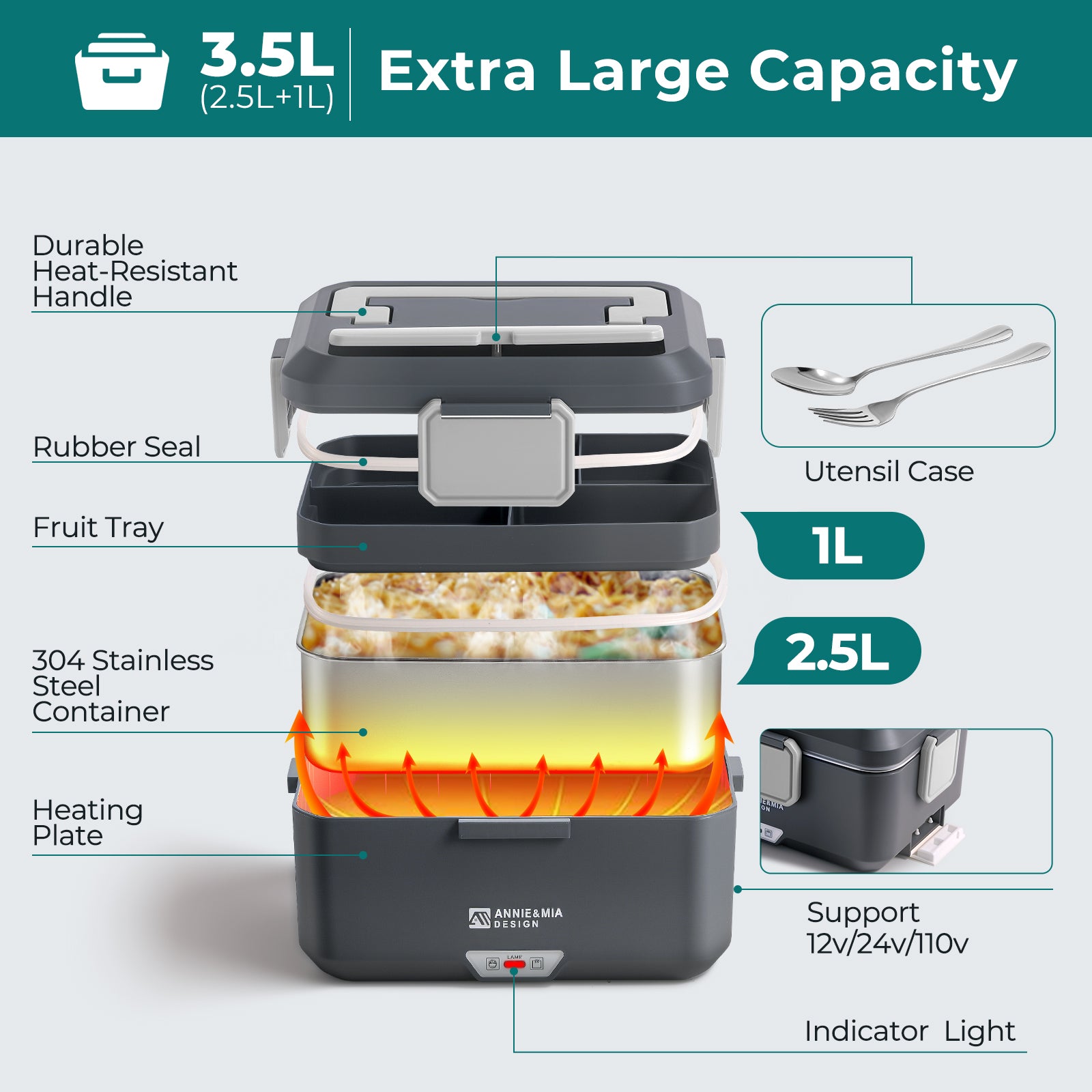 Annie & Mia Design 3.5L Electric Lunch Box(Steel Glacier)