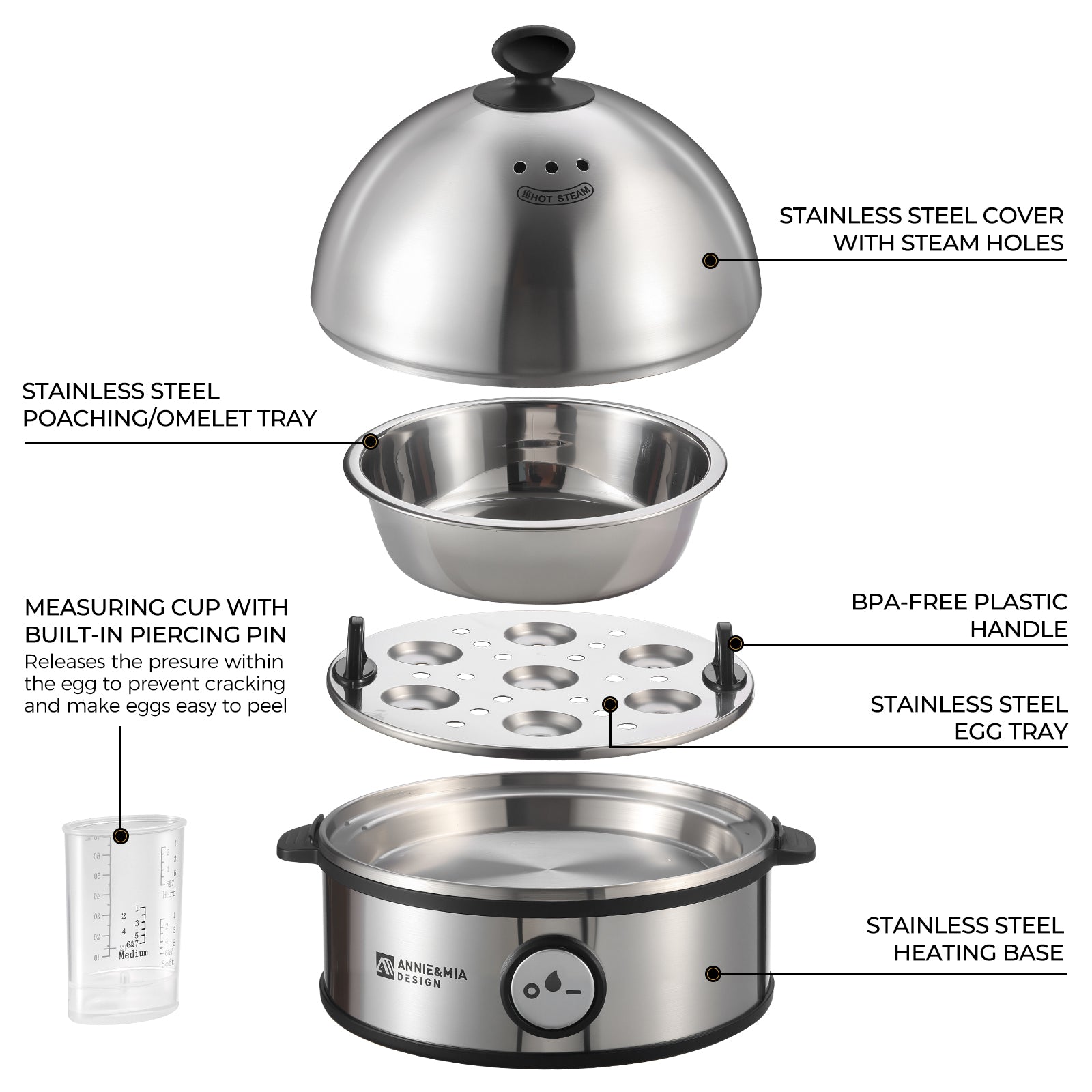 Annie & Mia Design Stainless Steel Electric Egg Cooker